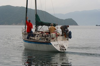 現在、8:00です。兵庫県香住沖を航行中です。天候は曇り、風は微風。機走で順調に走行中です。昨日の苦労から思うと、天国HPアップの余裕が出来ました。とりあえず西へ進みます。 午後、鳥取県に入る辺りより風速増し、だんだん強風に、小城氏が愛艇「シンシア」で境港到着ということで、遅くなっても境港へ行こうと決意。しかし、風は北西の強風、風速もだんだん増し、15m/sでうねりも大きく入る状況。機帆走ですが、非常に厳しい詰めのセーリングで波しぶきでぐちゃぐちゃになりながら、ようやく24:00に境港に到着しました。みんなクタクタになりました。境港で小城氏とミーティング、こんなところでBYCの仲間と会うとは素晴らしい事です。 予定を遅れていますが、明日朝は、少し遅め(8:00頃?)に出航予定です。 |